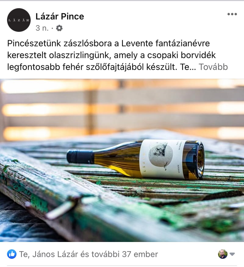 Lázár Pincészet web, social media